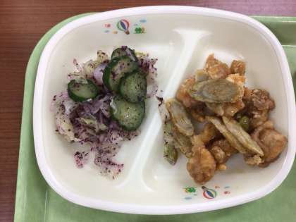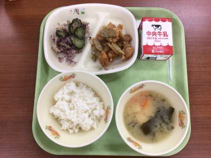 今日のかみかみ献立は「チキンチキンごぼう」です。