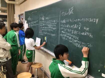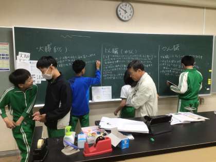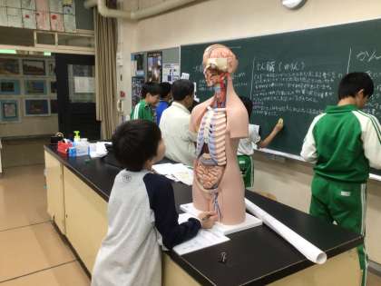 理科の時間です。体のつくりとはたらきの単元の学習です。臓器の関わりについて学んでいました。