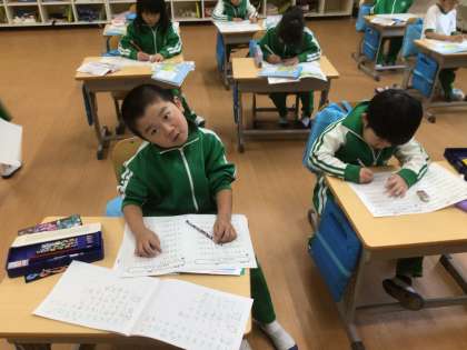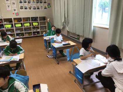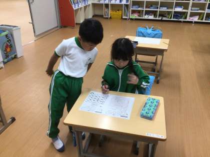 算数科のたし算の学習です。教科書の問題やプリントの問題をどんどん解いていました。
