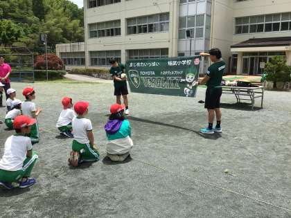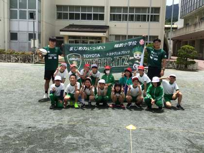 昨日のタグラグビー体験でトヨタヴェルブリッツさんからラグビーボールと校訓・校名の入ったすばらしい横断幕をいただきました。横断幕はホールに飾ります。来校時にご覧ください。