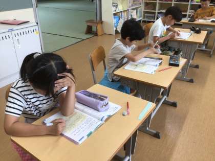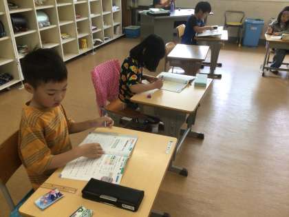 算数科の「はじめはいくつ」の学習です。練習問題ができた子から丸つけをしてもらい、どんどん進めていました。