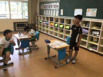 国語科の物語文の学習です。登場人物の気持ちについてや気持ちの変化について自分でまとめたことを発表していました。