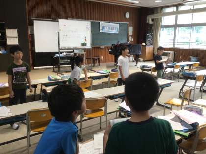 音楽の時間です。「明るい声と表情で歌おう」というめあてで周りの子の表情を見ながら楽しそうに歌っていました。