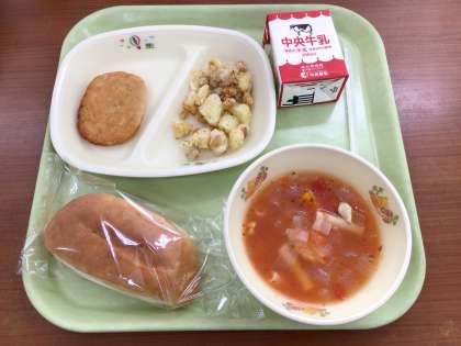 今日の給食は、洋食の組み合わせです。