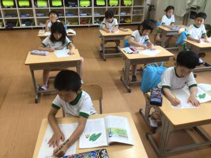 絵日記を書く時間でした。今日の出来事の中から何を絵日記にしようかと思い起こしながら悩んでいました。