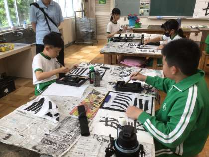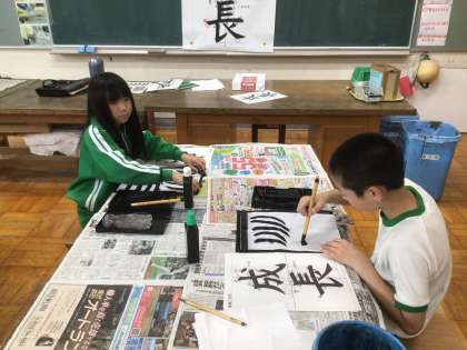 書写の時間です。「成長」の練習をしていました。文字の部分ごとに分けて繰り返し書いていました。