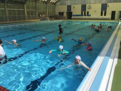 プールに入りました。水中じゃんけんや五歩鬼?などのゲームをしながら活動しました。