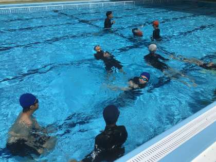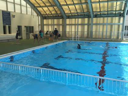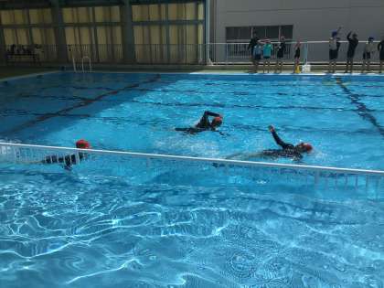 ペットボトルがあれば体が浮く体験をしました。後半は泳力別グループに分かれて泳ぎの練習をしました。