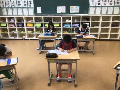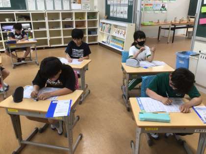 5時間目のスタディータイムです。各自で問題集やショートテストなどに取り組んでいます。基礎・基本の定着を目的におこなっています。