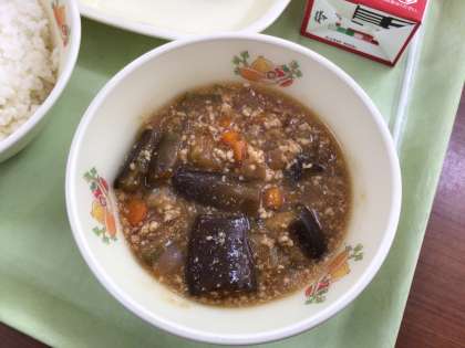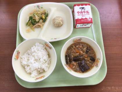 今日の給食のマーボーなすには、豊田市産のなすが使われています。