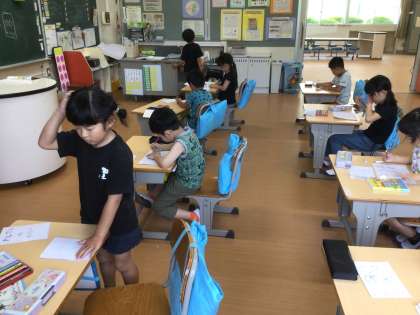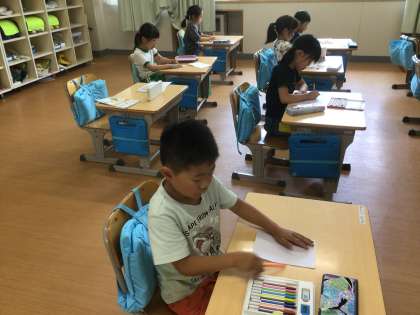 算数科で絵本づくりをしていました。たし算やひき算から作ったお話を絵にして絵本にするそうです。どんなものになるのか楽しみです。