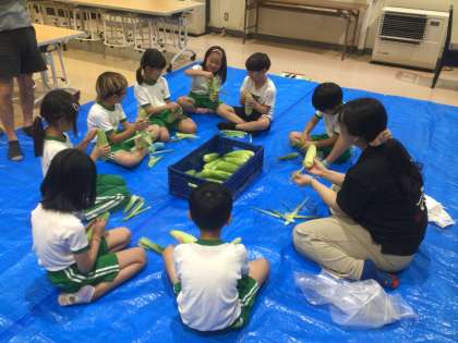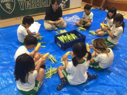 大雨で国道は通行止めのようですが、授業は開始できました。1時間目の生活科で明日の給食の食材である稲武産とうもろこしの皮むきをしました。興味津々に取り組んでくれています。明日の給食が楽しみです。