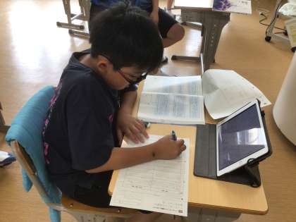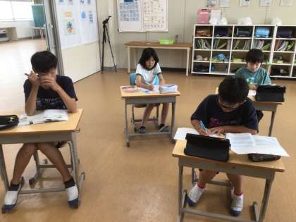 夏休みの課題にもなっている生活作文や読書感想文、教科のプリントなど各自で取り組みたいことに向かっています。いつも以上に集中しているように見えました。