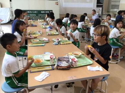 稲武の安藤農園さんの新鮮なとうもろこしを2年生が丁寧に皮を向き、給食センターのみなさんがおいしく調理してくれました。