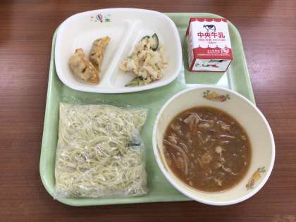 今日の給食は、月に1回のめんの日です。