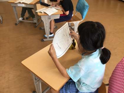 国語科の「案内の手紙を書こう」という単元の学習でした。休み明けの月曜日ということもあるのかもしれませんが、いつもより静かに取り組んでいました。
