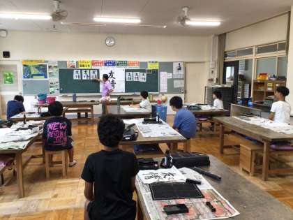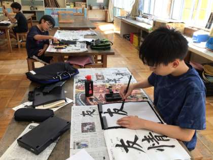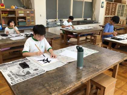 書写の時間です。「友情」という文字を練習していました。一度提出したものを見直して、より整った作品を仕上げようとしていました。