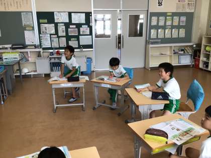 道徳科の時間です。「学級しょうかい」という教材でした。みんなで協力して学級をよりよくしていこうという気持ちを深めることができたのではないでしょうか。