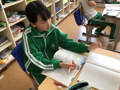 算数科の時間です。練習問題に取り組んでいました。算数の友は、難しい問題もあるため少し時間がかかりますね。