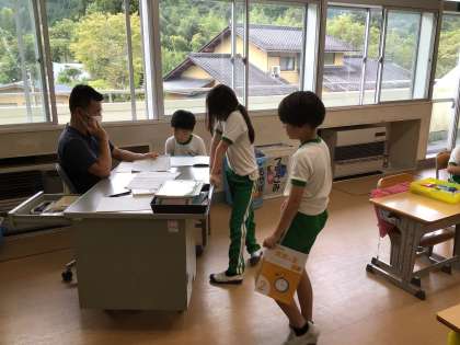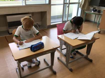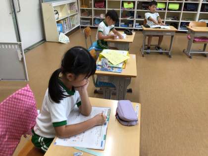 算数の時間です。算数の友の中にある学びのまとめのページを黙々と解いています。どの子も集中して取り組んでいました。