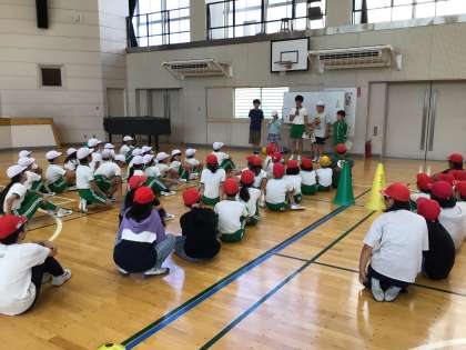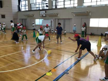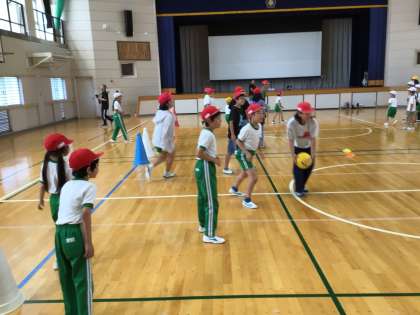 ふれあいタイムにどんぐり企画委員会主催の全校遊びがありました。遊びは「ころがしドッジ」でした。これならボールが当たるのがこわいという子も大丈夫です。
