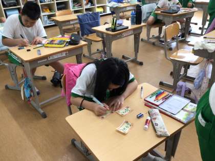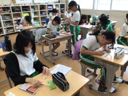 明日から林間学校です。林間学校で使用する何かを手分けして作っていました。何なのかは秘密のようです。まずは体調万全で明日を迎えたいですね。