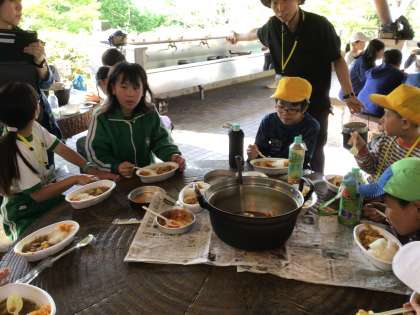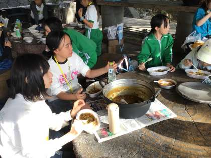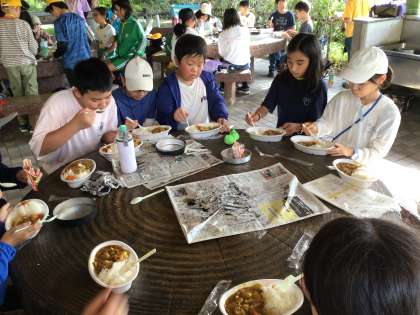 4時半前ですが、夕食のカレーライスを食べ終わりました。どの班も事前練習の成果か、おいしく出来上がりました。この後、片付けを済ませたらキャンプファイヤーです。