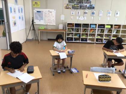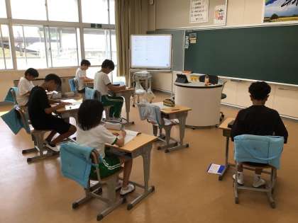 5時間目のスタディータイムの時間でした。漢字の自習をしながら個別に教育相談もしています。