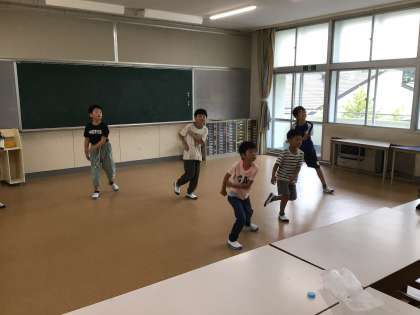 運動会の応援練習が始まっています。長い放課に6年生が呼びかけて練習したい子が集まってダンスを踊っていました。今年はどんな内容なのか楽しみです。