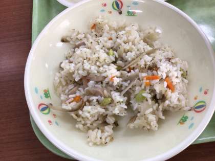 混ぜご飯は、かむ回数が減りがちなので、ベーコンや小魚を組み合わせてしっかりかむことが意識できる組み合わせになっています。