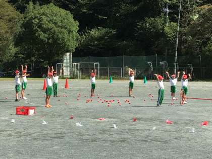 玉入れの練習の様子です。入退場も含めて、練習に真剣に取り組んでいました。
