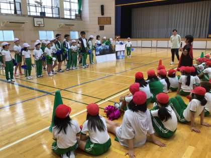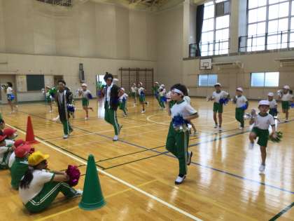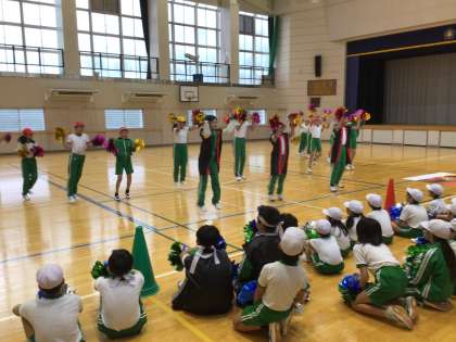 5時間目は雨が降っていたため、体育室で行いました。初めて演技を見せ合う会をしました。見られている分、いつも以上に気合いを感じました。見た後にはお互いに良かったところやアドバイスを伝え合いました。明日が最後の練習になります。