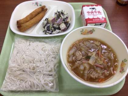 今日の給食は、たくさんの野菜を使った 野菜あんかけめん です。