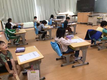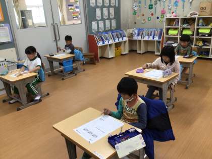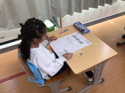 算数のテストの時間でした。どの子も真剣に取り組んでいました。