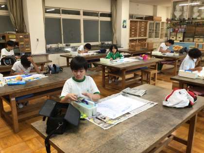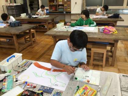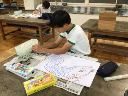 図画工作科の時間です。読書感想画に取り組んでいました。課題図書でもあった「ラナと竜の方舟」の感想画ということです。