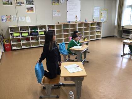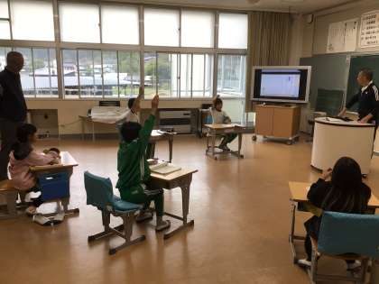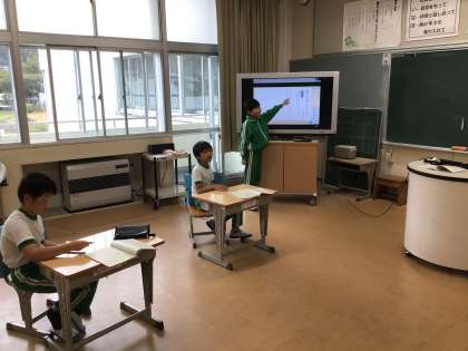 国語科の時間です。主語と述語で、一つの文の中にある主語と述語をそれぞれ見つける学習をしていました。余計な語句を省くことが簡単ではなさそうでした。