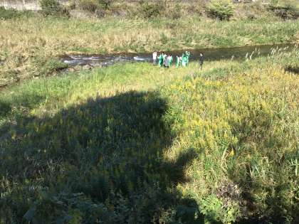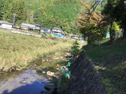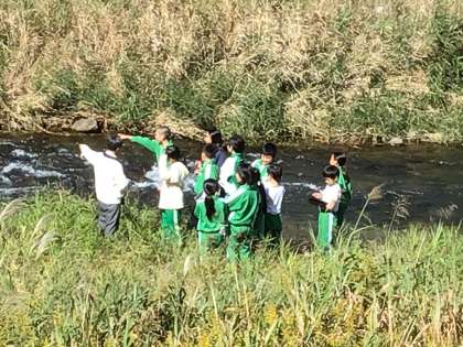 理科の授業の様子です。川の観察をしました。大雨によって多量の石や土が運ばれた様子も確認しました。
