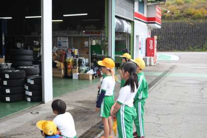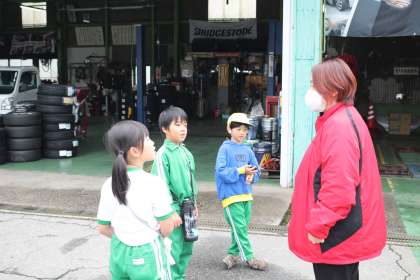 生活科のまちたんけんで校外学習に出かけました。高崎モータースさんで質問したりお話を聞いたりしました。