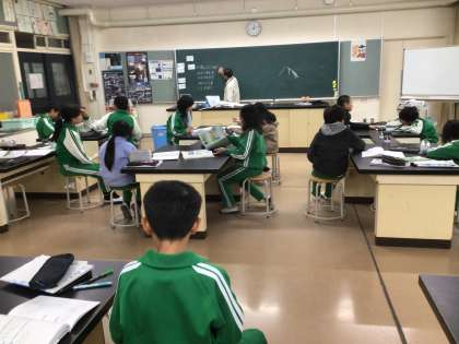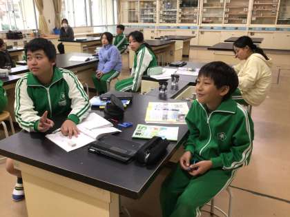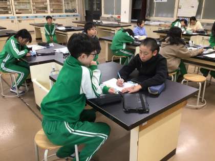 理科の時間です。流れる水のはたらきの単元のところで増水した時の土地の変化について学習していました。