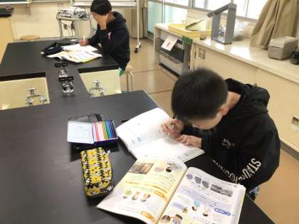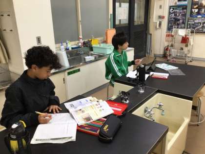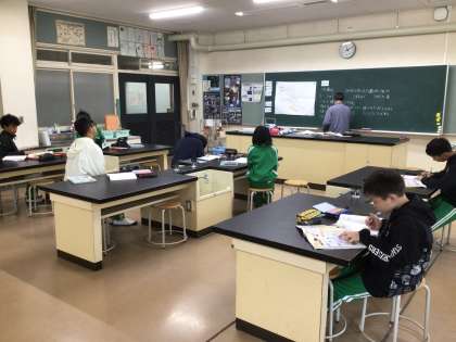 理科の時間です。地層についての学習です。どのようにして地層ができあがるのかについて学んだことをもとにまとめていました。