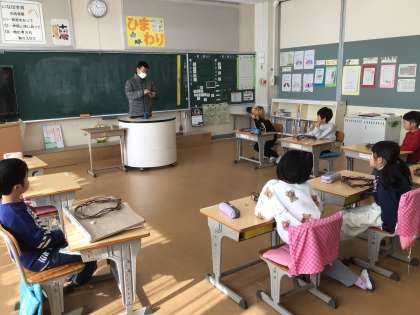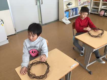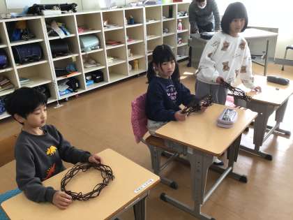図画工作科の時間です。クリスマスに向けてのリースづくりをしていました。まずは安全面の注意を聞き、これから飾り付けの段階でした。