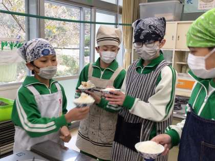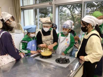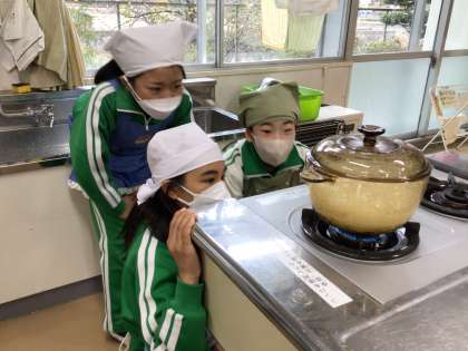 1・2時間目の家庭科の時間にご飯を炊く実習をしました。食べた感想を聞くと、「すごくもちもちだった」「上手にできておいしかった」等、上出来だったようです。