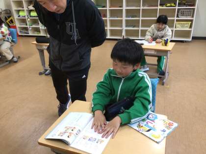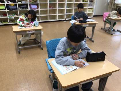 国語科の時間です。こそあど言葉について学んでいました。語句をあてはめる問題では、すらすらと答えている様子でした。