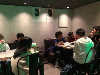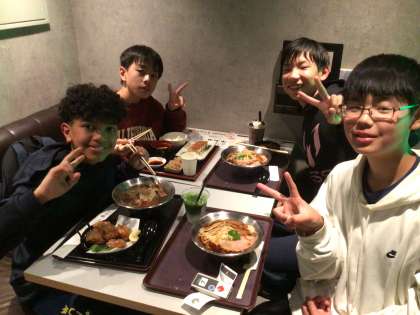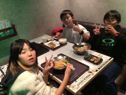 ホテルに寄ってから駅地下で夕食を食べました。あらかじめ決めていたようですが、ラーメンとデザートの子が多かったです。