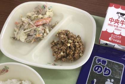 チーズが入った納豆は、豊田市の特徴的な給食です。