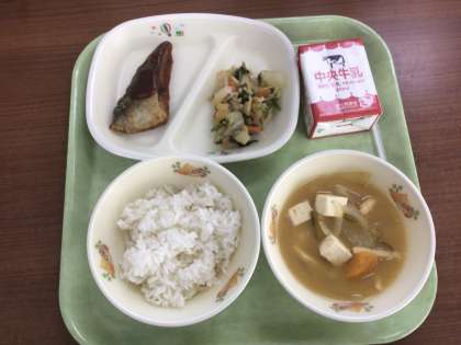 ごはん ぶりのゆずあんかけ ごまあえ かぼちゃのみそ汁