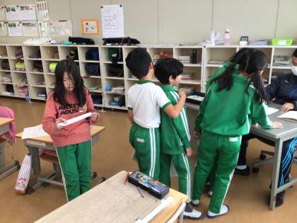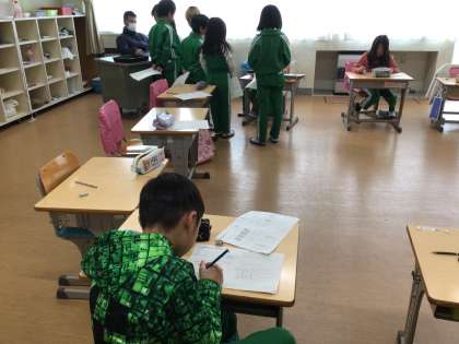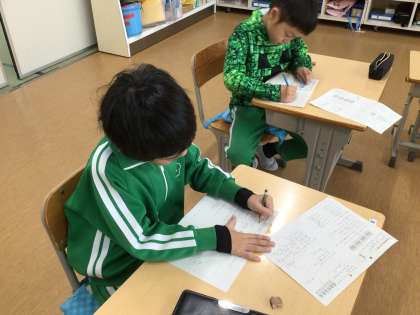 算数科の時間です。復習プリントをしていました。ほとんどの問題にまるをつけてもらっていました。しっかりと学力がついたということですね。