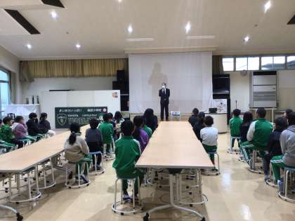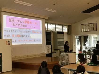 子どもたちは、挨拶や思いやりについての校長先生のお話を真剣に聴いていました。