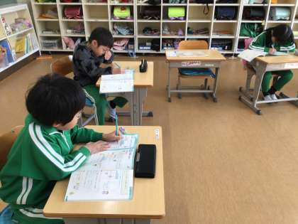 算数科の時間です。各自で九九の表づくりをしていました。頭の中で九九を唱えながら空欄を埋めていました。
