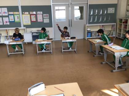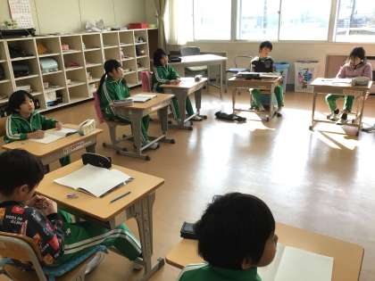 算数科の時間です。「かけ算をひろげて」ということで、九九では出てこない2桁を掛ける問題の解き方について考えていました。